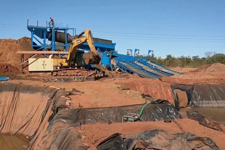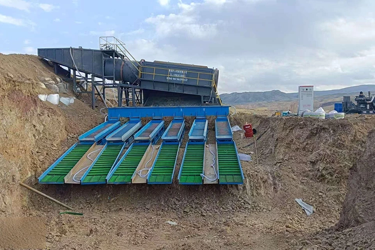 Mobilno postrojenje za iskopavanje zlata: To je glavna oprema za kopneno iskopavanje zlata, sa fleksibilnim premještanjem. Integrira funkcije cijelog procesa hranjenja, prosijavanja i odvajanja zlata. Nakon što se kamenje ukloni pomoću sita, rudni mulj se zatim odvaja opremom kao što su pregrade i centrifugalni koncentratori.